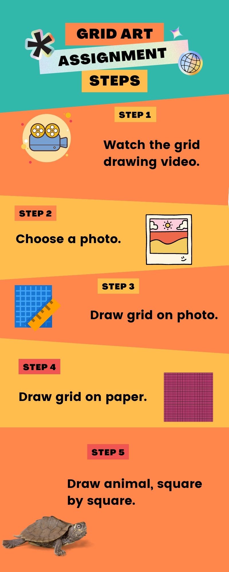 Step 2: Review the grid drawing video to use the steps of creating a grid for your reference and your drawing.